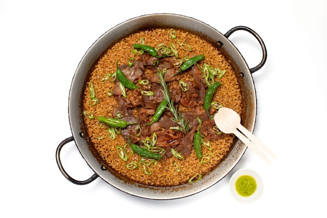 渋谷ストリーム3階にある、バルセロナで一番おいしいパエリアを提供するシーフードレストラン〈XIRINGUITO Escriba(チリンギート エスクリバ)〉に夏期限定パエリア「イベリコ豚と青唐辛子のパエリア」が登場。暑さが本格化するこの季節に食べたい、ただ辛いだけではない旨みがぎゅっと凝縮されたパエリアが登場します。