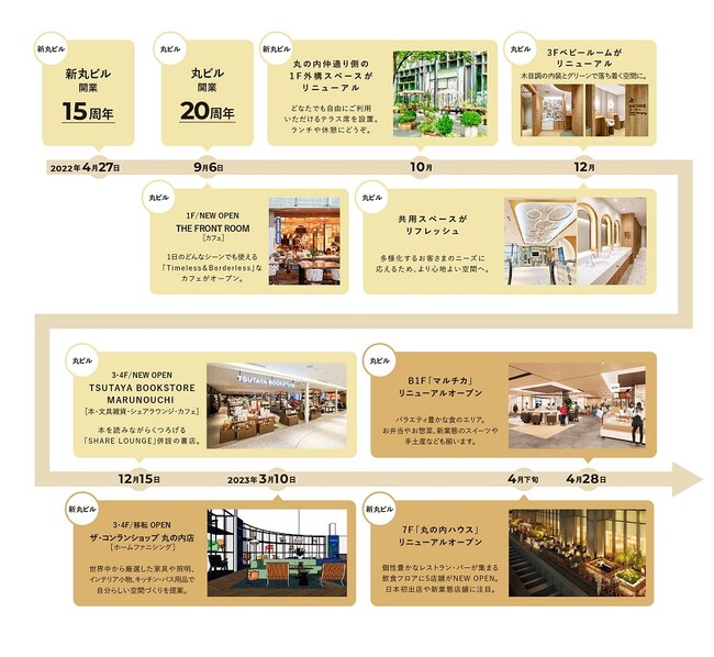 丸ビル・新丸ビルは2022年9月6日(火)より、2023年春まで段階的なリニューアルを実施してまいりました。以下にて、これまでのリニューアル情報をまとめております。