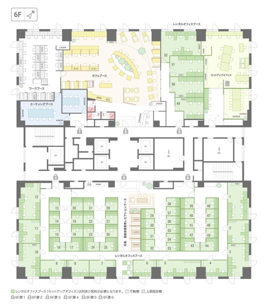 席数 :【コワーキングスペース】オープンスペース62席/【レンタルオフィス】52戸