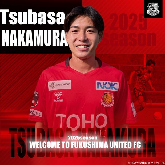 このたび、法政大学の中村 翼 選手の来季加入が内定しましたことを、お知らせいたします。