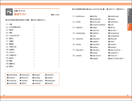 TOEIC L&R テストに関する知識をわかりやすく解説した監修者によるコラムが収録されています。また、テーマごとに、見出し語を覚えられたかを確認できるチェックテストがついています。