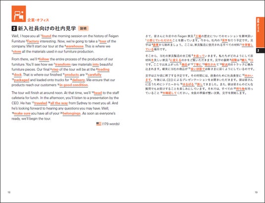 TOEIC L&Rテストによく出る形式の長文の中で、文脈を通じて単熟語を覚えられます。単語力増強のみならず TOEIC特有の文書に慣れるという効果も期待できます。