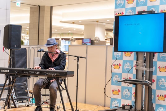 「がんフォト*がんストーリー」新作発表の様子。マキシマハロウさん(作曲家)