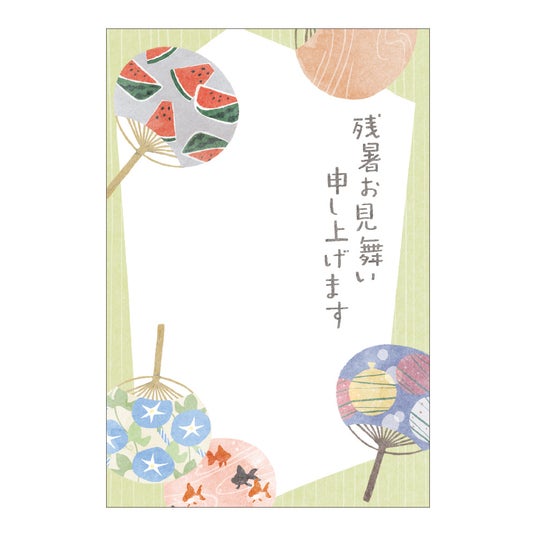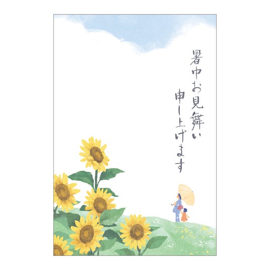 夏に咲く花や風物詩が描かれた4種類の絵柄に、暑中見舞い・残暑見舞い等のあいさつ文が印刷された便利なはがきです。