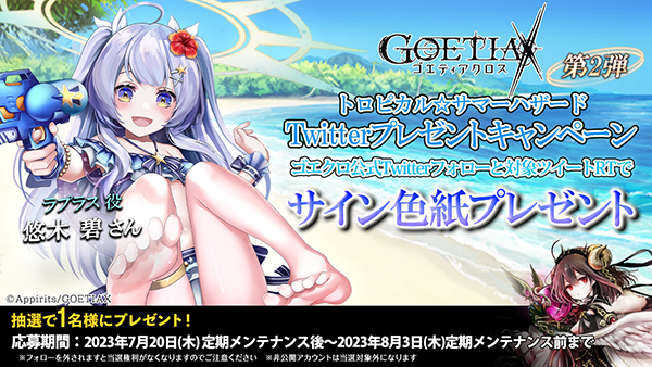 株式会社アピリッツ(本社:東京都渋谷区、代表取締役社長執行役員CEO:和田 順児)が開発・運営するスマートフォンアプリ・ブラウザゲーム・PlayStation(R)4/PlayStation(R)5版『ゴエティアクロス』は、イベント限定エリア「トロピカルシップ」や「トロピカル☆サマーハザードログインボーナス 」などを含む「トロピカル☆サマーハザードキャンペーン!」を開催中です。