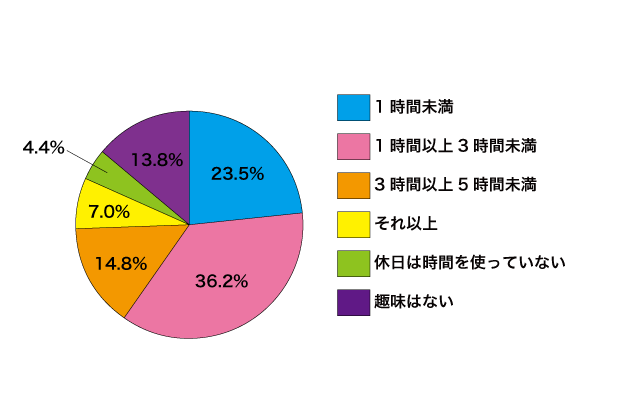 趣味に使う時間としては「1時間以上3時間未満」という方が多いようです。