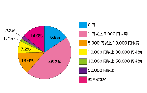 また若干数ではありますが「50,000円以上」というモニター会員の声もあり、趣味にかける金額は個人差が大きいことが分かりました。