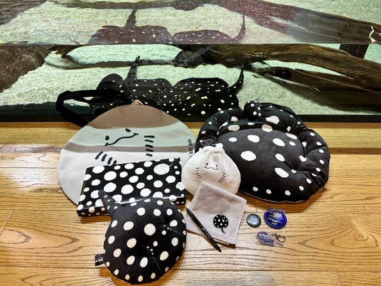 そこで、黒字に白いドット柄が特徴の“ポルカドットスティングレイ”の模様に注目し、様々な種類のグッズを展開しています。