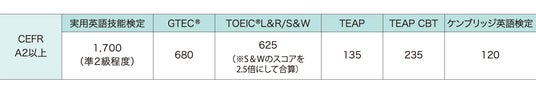 - 外国語、国際文化への興味・関心を持ち、将来グローバル社会での活躍を目指す者かつ下記英語力を有する者