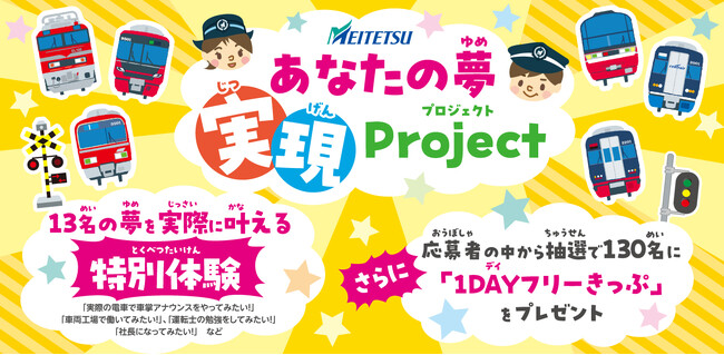 「名鉄でやってみたい夢」を募集し、応募の中から厳正なる審査のうえ、13名の方の夢を実現するお手伝いをします。