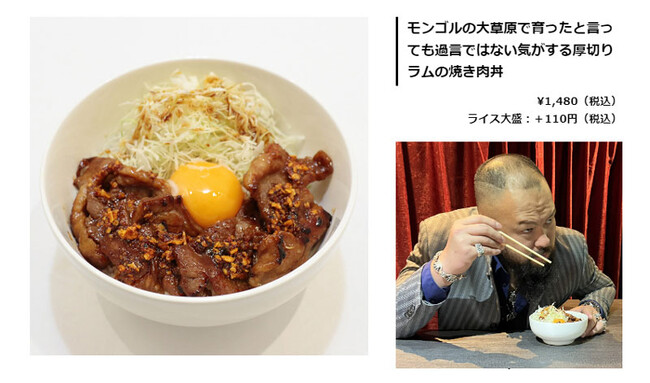 ・モンゴルの大草原で育ったと言っても過言ではない気がする厚切りラムの焼き肉丼 価格:¥1,480(税込)