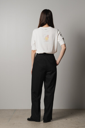 仕事に家事、勉強や介護など、マルチタスクの日々を送る現代人は、がんばりすぎてつい自分を追い込んでしまいがち。そんなとき、遊び心たっぷりのイラストが目に入ることで、自身をねぎらったり、意図的に休むことを促してくれたりするようなニットTに仕上げました。