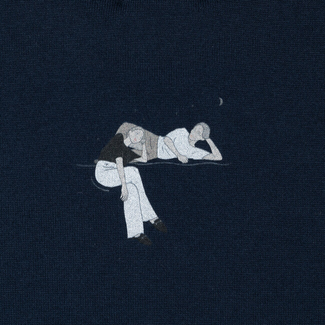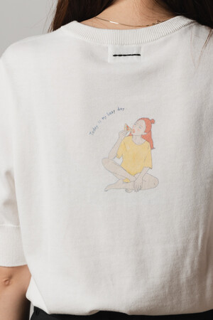 サクマランが描く柔らかなタッチのイラスト×ニットの包み込むような優しさが、着る人の気持ちを和ませ、リラックスさせてくれます。