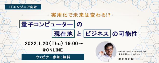 ITエンジニアの新しい働き方を提案する株式会社PE-BANK(東京都港区/代表取締役 高田 幹也)は、2022年1月20日(木)19時より、量子コンピューターに関するオンラインセミナー『実用化で未来は変わる!?量子コンピューターの現在地とビジネスの可能性』を開催いたします。