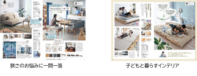 さらに、インテリアを考える際に頭を悩ませる「お部屋の狭さの問題」や、「子どもと暮らすインテリア」もお客様の声をもとに解決方法をご提案。商品開発担当者いちおしのアイテムを紹介するなど、この1冊に新生活で必要なインテリアのヒントがたくさん詰まっています。