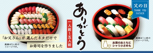 父の日シーズンの特別商品『ありがとう』(1~5人前)は、「銀のさら」WEB会員であるお父さん8,029名に調査した父の日に食べたいネタだけで作った寿司桶で、「銀のさら」公式サイト( https://www.ginsara.jp/ )限定の商品です。※店舗により取り扱いの無い場合があります。