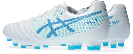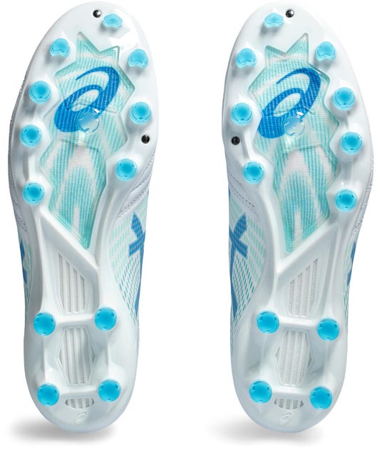 軽さと優れたフィット性から得られる「素足感覚」で履ける着用感に加え、靴底にデジタル設計技術を用いることでシューズと足の一体感を高めスプリント能力を発揮しやすくしたエリートモデルです。アッパー(甲被)は、スプリント時に適した剛性を発揮できるよう、中部の内側と外側にそれぞれ異なる形状の補強材を配置しています。アシックススポーツ工学研究所でプレーにおけるさまざまな動作を分析したうえで設計しており、足元のブレを抑制し屈曲時にもよりフィットするようサポートします。靴底は、樹脂製のプレートを大きくくり抜き軽量化をはかりながら、中部をN字型に成型することで剛性を高め、接地時のブレの原因となる過度なねじれを抑制しています。また、サッカー選手の足形や足の動きを分析し、足ゆびの関節に沿って、素早くしなやかに追従するよう剛性や形状を設計しています。さらに、つま先の先端部分には、グリップ性を高める変形円柱型スタッドとブレード型のサブスタッドを配し、蹴り出し時のパワーを最後までピッチに伝えることができるようにしています。