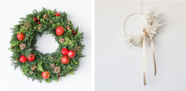 見た目でも、香りでもクリスマスを楽しめる緑葉のグリーンで仕上げたフレッシュリースや