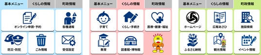 「基本メニュー」「くらしの情報」「町政情報」のメニューから様々な情報を検索することが可能になりました。