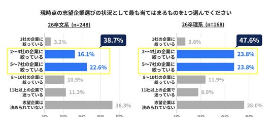 - 理系の方が文系よりも志望企業を絞り込む傾向が見られる