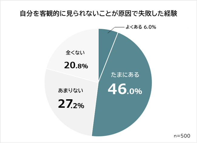 続いて、「自分を客観的に見れないことが原因で仕事で失敗した経験があるか」を聞きました。