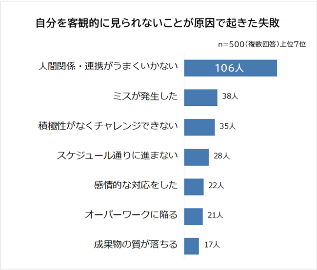 自分を客観的に見れないことが原因でおきた仕事の失敗1位は「人間関係・連携がうまくいかない」