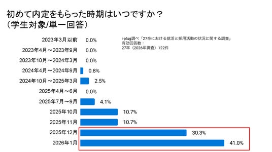・内定保有者の約4割が「2026年1月」に初めての内定を獲得している。