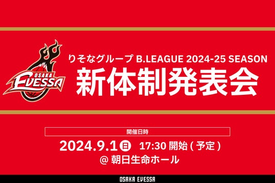 大阪エヴェッサは「りそなグループB.LEAGUE 2024-25 SEASON 大阪エヴェッサ新体制発表会」の開催が決定しましたのでお知らせします。