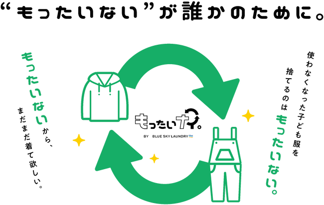 “もったいない”が誰かのために。とは、不要になった子供服を回収し、必要な家庭にお譲りする活動で、リユースを通じて新たな“地域コミュニティの場”をコインランドリーから発信することを目的としています。