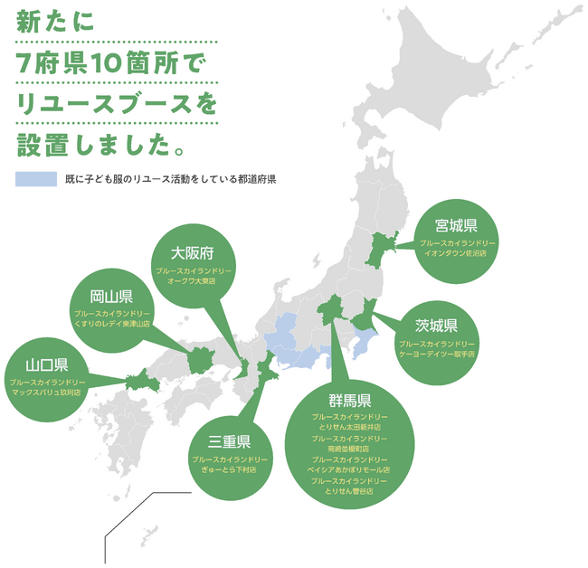その後、同年11月 愛知・静岡・千葉県と6カ所拡大させ、全11カ所にてリユースブースを設置いたしました。