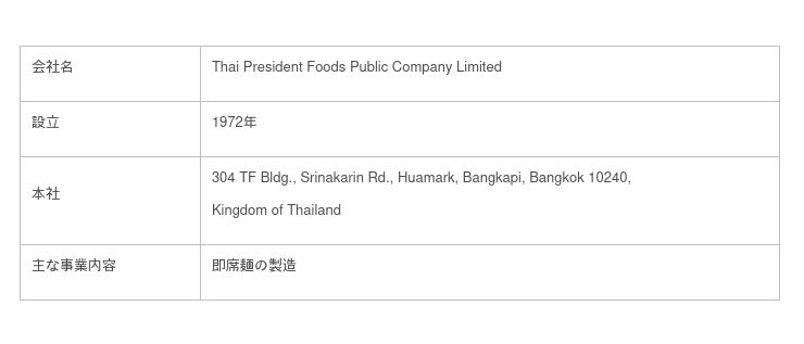 本事業では、世界各国の市場に合わせた商品開発に強みを持ち、タイで即席麺の製造販売最大手のThai President Foods(タイプレジデントフーズ) Public Company Limitedが技術パートナーとなり、製造技術や品質管理の指導を受けながら、新たな商品を共同開発しています。