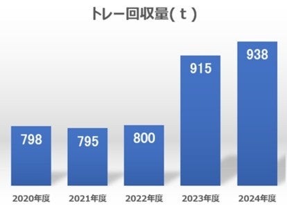 2024年2月期において、平和堂では使用済み食品トレーを938t回収し、回収資源から再生されたエコ製品を売り場で使用しています。