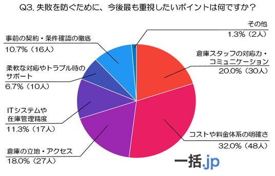 そこで今回、物流倉庫や発送代行業者を厳選して紹介するBtoBマッチングサイト『一括.jp(https://emeao.jp/ikkatsu-column/shippingagency_recommendation/ )』は、実際に物流倉庫の運営や管理に携わっている担当者150名を対象に「失敗経験」「失敗の具体的理由」「重視したいポイント」「有効な失敗防止策」など、現場のリアルな声を徹底的に集めました。