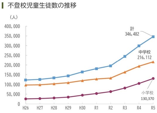 2023年度における小中学校の不登校児童・生徒数は34万6,482人に達し、前年から