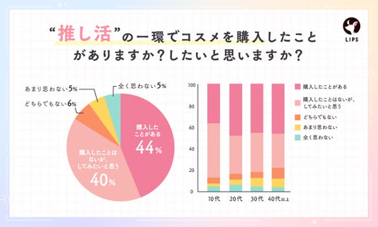 また、次点として「購入したことはないが、してみたいと思う」の回答が40%と、推し活の一環としてコスメの購入を前向きに考える方が非常に多いとわかります。