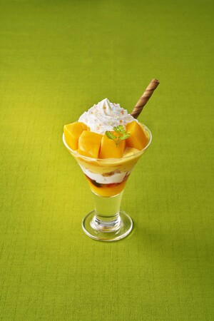 今年のマンゴーパフェは、完熟のアップルマンゴーをたっぷり使用し、果肉入りのマンゴーソースやマンゴークリームなどマンゴーづくしのスイーツです。