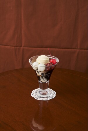 バニラアイスとゆであずき、白玉と一緒にお楽しみください。