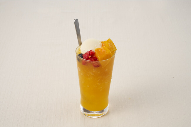 完熟のアップルマンゴーにマンゴーのソースやクリームをたっぷり使用した、マンゴー好きにはたまらない贅沢なパフェです。