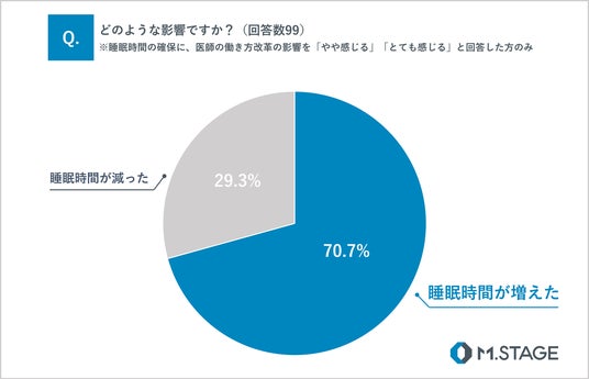 ・睡眠時間の確保に「医師の働き方改革が影響」約1割、