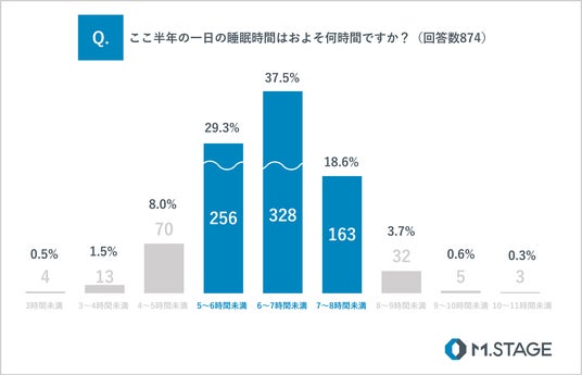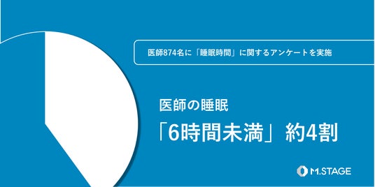 医療人材総合サービス、事業場向け産業保健支援を提供する株式会社エムステージ(東京都品川区、代表取締役:杉田雄二)は、エムステージが運営する『Dr.転職なび』『Dr.アルなび』の登録医師のうち874名に「睡眠時間」に関するアンケート調査を実施しました。