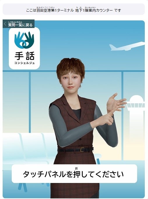 株式会社NHKエンタープライズと国立大学法人筑波技術大学は、東京都の「先端技術を活用したバリアフリー観光推進事業」に採択されています。本事業の一環として、日本空港ビルデング株式会社、東武トップツアーズ株式会社および株式会社京王プラザホテルと連携し、手話CGによる案内サービス「手話コンシェルジュ」を開発しました。このたび、羽田空港などで実証実験を実施することとなりましたので、お知らせします。