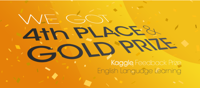 「Feedback Prize - English Language Learning」は、英語学習者の言語能力に対するフィードバックをテーマにしたコンペティションです。2022年8月31日~2022年11月30日にかけて行われ、個人、複数人からなる2,654のチームがモデルの精度の高さを競いました。ウォンテッドリーのデータサイエンスチームにてテックリードとして活躍する合田周平は、ソロで参加し全体の4位に入賞し、全参加者の上位15名のみに与えられる金メダルを獲得しました。(通称『ソロ金』)
