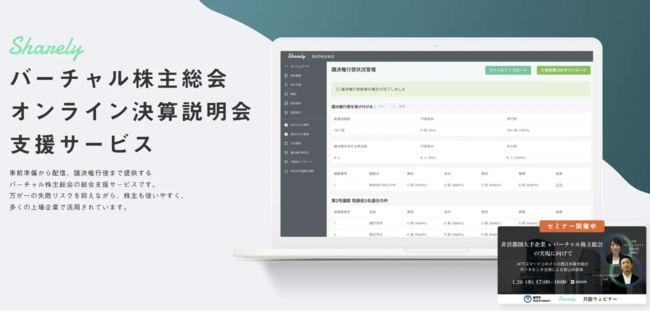 今後もSharelyでは、株主総会のデジタル化を総合的に支援することを通じて、株主総会への参加をより身近なものに変え、資産運用や投資を始めるきっかけを提供していきたいと考えています。