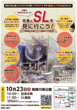 9月には地元の小中学生による車両塗装のイベント、10月には汽笛復活をメインに100周年記念イベントが開催されます。(後援:佐倉市)