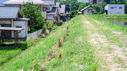 ため池の堤体。ため池管理で維持されてきた環境が草原性希少植物の生育環境として重要と着目された