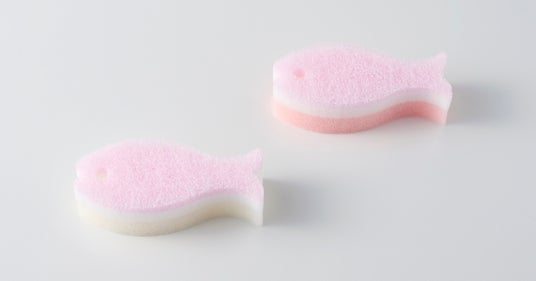 「おさかなスポンジ」はおさかなの形が手になじみ、握りやすいキッチンスポンジです。長めのサイズでコップの底まで届きます。ナイロン不織布・ウレタン・脱膜ウレタンの3層構造で、汚れ落ち、泡立ち・泡持ち、水切れにも優れています。「かわいいだけじゃなく使いやすい」と4半世紀以上お客様に支持をいただいています。