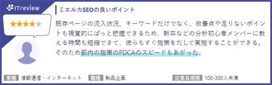 ITreviewに寄せられたミエルカSEOのレビューを抜粋