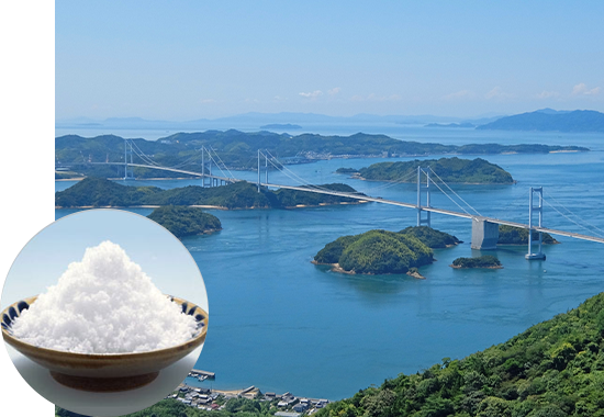 塩味ほどよく、まろやかな味わいのあら塩「瀬戸のほんじお」を480℃以上の高温直火製法で丁寧に焼き上げました。