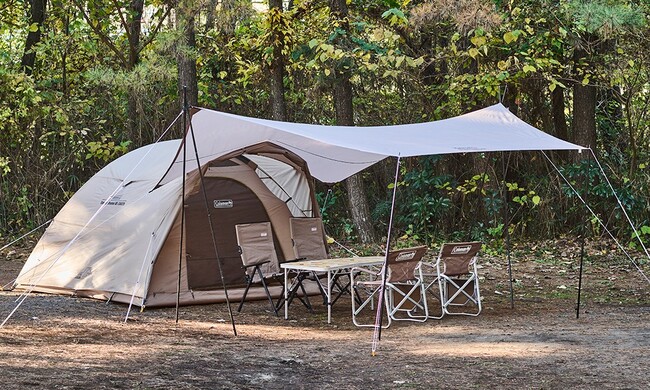 自然に溶け込む落ち着いた色味で、どんな色のギアとも相性の良い“グレージュ”カラーを採用。コールマンでは、タープやチェア、クーラー、寝袋に至るまでさまざまなグレージュアイテムを展開しており、それらと本製品を組み合わせることで統一感のあるスタイリッシュなサイトをつくることも可能です。
