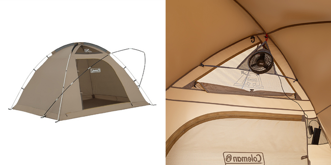 インナーテント天井部分の大きなベンチレーター部分には、モバイル扇風機「リバーシブルファンベンチレーション(別売)」を取り付け可能に。進化したアドバンスドサークルベンチレーションシステムにより換気性能を高め、夏など蒸し暑い環境でもテント内部を涼しく快適な空間にします。
